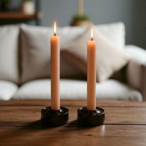 Keraaminen pyöreä musta tukeva kynttilänjalka kruunuputille.