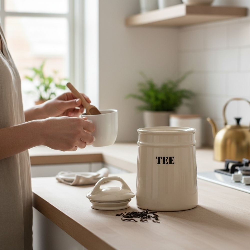 Kerman värinen herttainen purkki teelle.