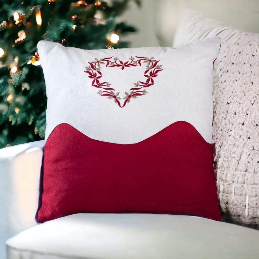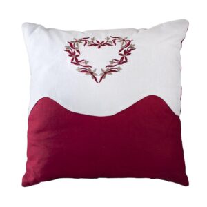 Kauniilla ornamentti koristeella kruunattu Hertta-tyynynpäällinen soveltuu erinomaisesti jouluiseen sisustukseen. Tyynynpäällinen on takaosasta kokonaan punainen. Sisustyyny on helppo asettaa tyynynpäällisen sisään, sillä tyynyn alareunassa on piiloon ommeltu vetoketju.