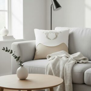 Kauniilla ornamentti koristeella kruunattu tyynynpäällinen soveltuu erinomaisesti erilaisiin sisustuksiin. Beigen väristä tyynyä kaunistaa valkoinen huppu, jossa kaunis ornamenttikuvio. Tyynynpäällisen takaosa on kokonaan beige. Sisustyyny on helppo asettaa tyynynpäällisen sisään, sillä tyynyn alareunassa on piiloon ommeltu vetoketju.