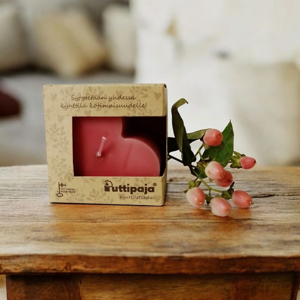 Puttipajan sydänkynttilässä on paljon rakkautta pienessä paketissa. Pintavärjätty herttainen sydänkynttilä ihastuttaa muotonsa lisäksi monipuolisella värimaailmallaan. Laadukkaan parafiinin ja puuvillaisen sydänlangan ansiosta Puttipajan sydänkynttilä palaa kauniisti ja puhtaasti noin 40 tuntia. Suloinen sydänkynttilä on oiva lahja tai pieni muistaminen juuri sille tärkeälle ihmiselle.